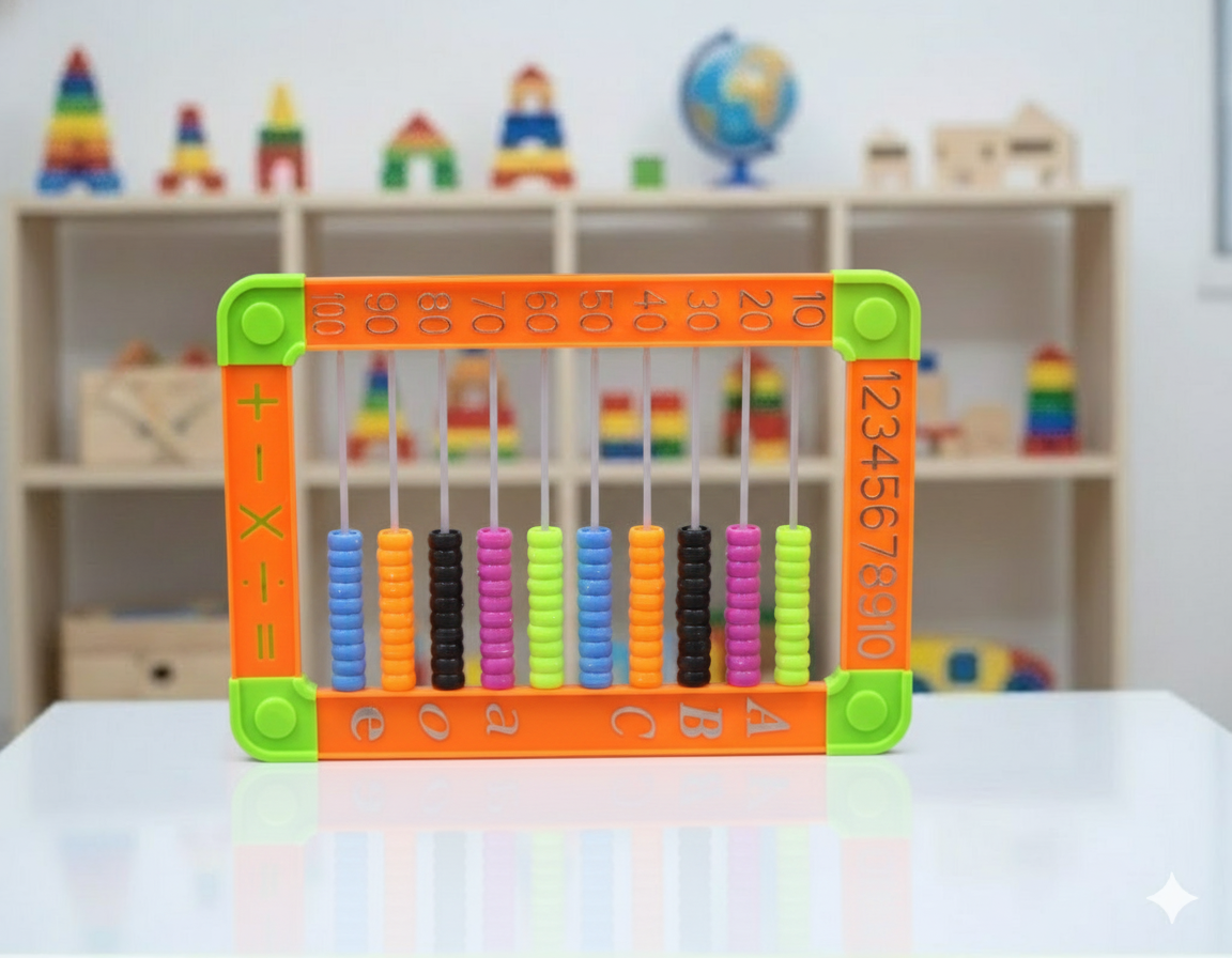Este ábaco matemático integra barras con fichas deslizables, números, letras y símbolos básicos de operaciones (+, −, ×, ÷), convirtiéndose en una herramienta completa para la estimulación cognitiva temprana y escolar. Su diseño visual y manipulativo facilita la comprensión concreta de cantidades, secuencias y operaciones, siendo ideal tanto para procesos de aprendizaje inicial como para apoyo terapéutico en dificultades académicas.