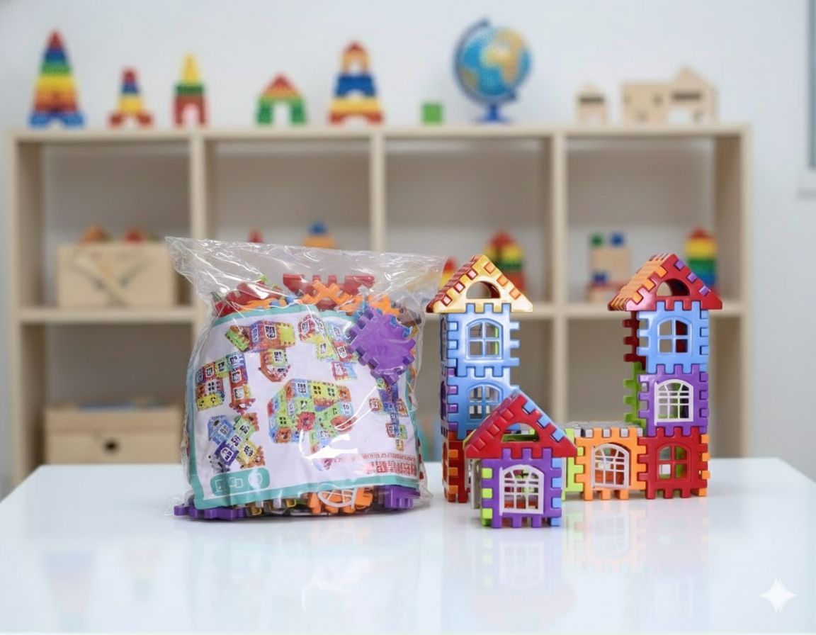 Este set de bloques encajables de construcción está diseñado para que los niños creen casas, torres y diferentes estructuras uniendo piezas de colores mediante encaje. Su diseño favorece el juego libre y estructurado, permitiendo trabajar habilidades cognitivas y motoras mientras el niño planifica, prueba y ajusta sus construcciones. Es ideal para estimular la creatividad, la concentración y el aprendizaje activo a través del juego.