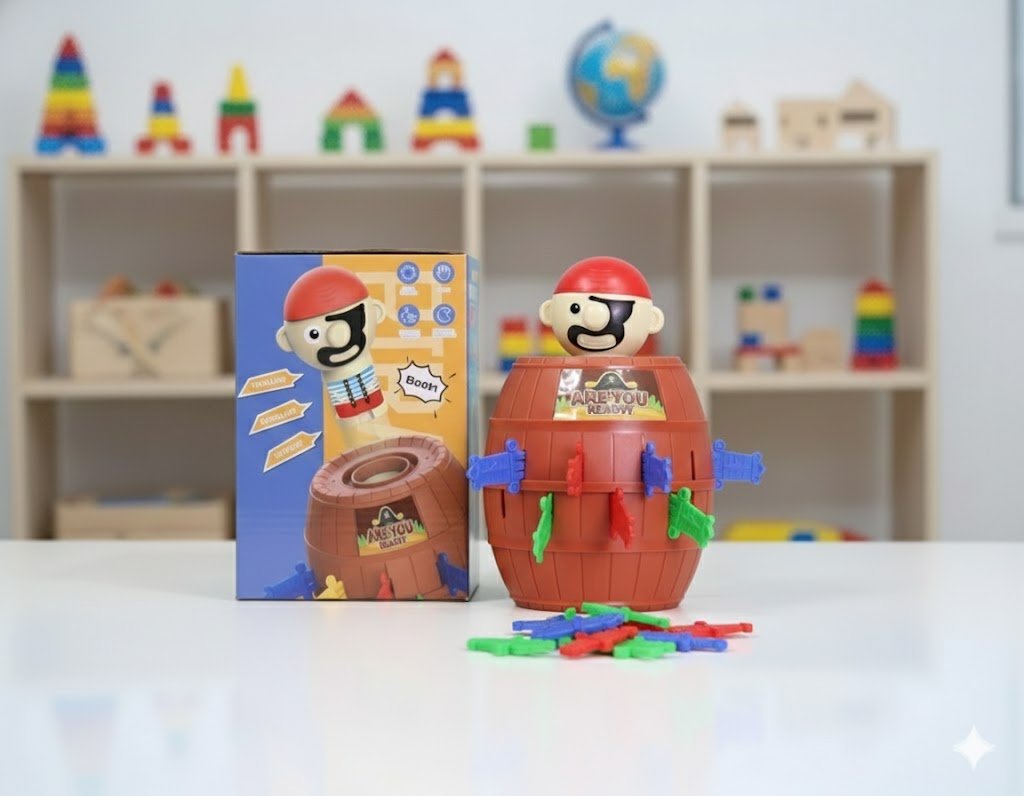 Este juego del pirata saltarín es una herramienta ideal para estimular múltiples funciones cognitivas a través del suspenso y la emoción. El niño debe elegir una espada, ubicarla en una ranura y anticipar qué puede pasar, lo cual activa procesos de planificación y control de impulsos.